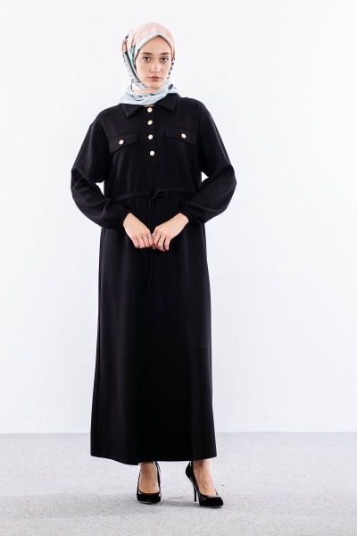 4172 Elbise 42-48 Tunelli Detay - Gri - 1