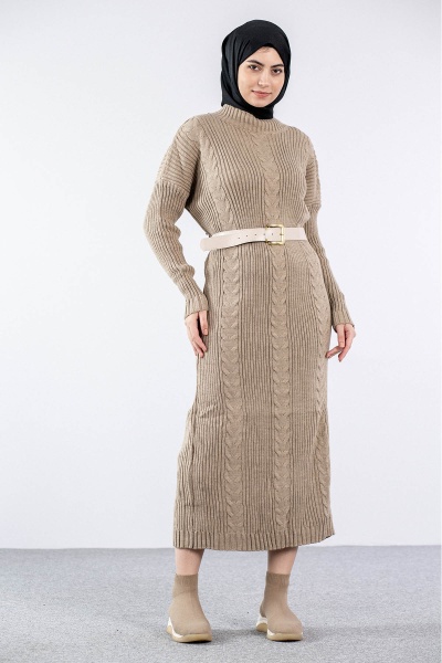 4279 Triko Elbise Tek - Tas - 4