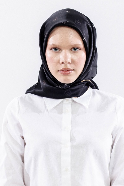 4638 İpek Eşarp 90*90 Sura Logo - Siyah_beyaz - 1