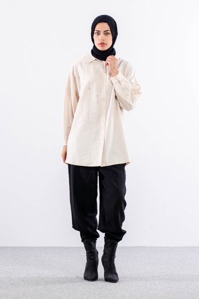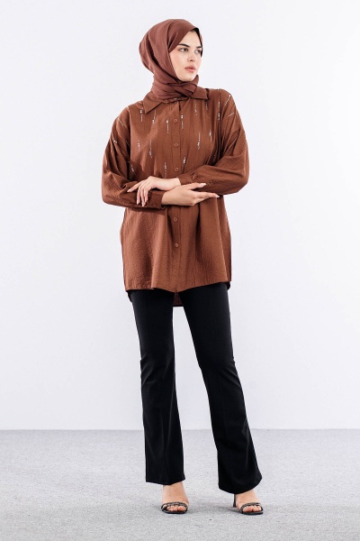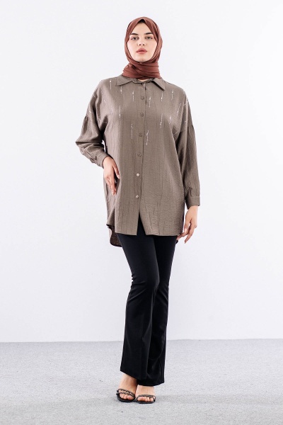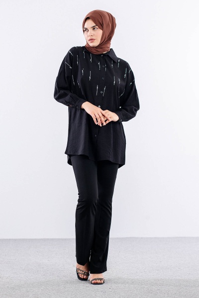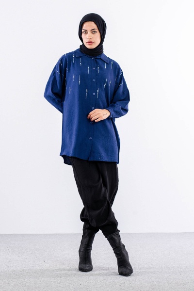 5005 Tunik 42-44-46 Taslı Detaylı - Zumrut