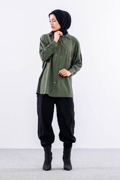 5005 Tunik 42-44-46 Taslı Detaylı - Zumrut - 1