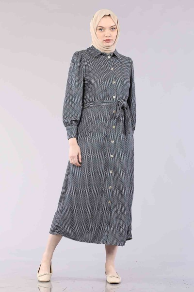 5502 K.çizgi Elbise 38-46 - Haki - 1