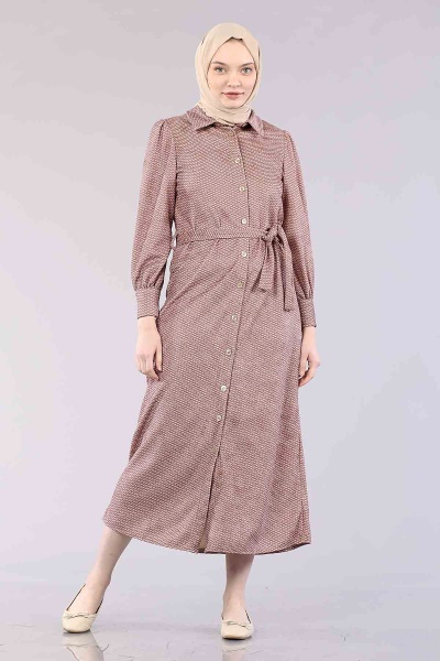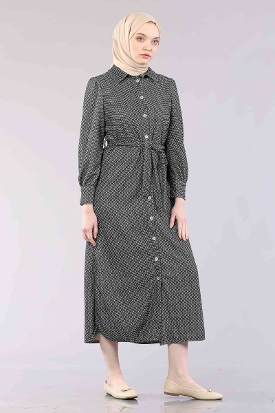 5502 K.çizgi Elbise 38-46 - Petrol - 5