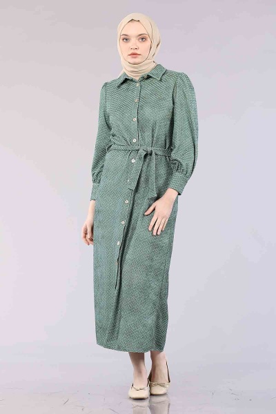5502 K.çizgi Elbise 38-46 - Petrol - 4