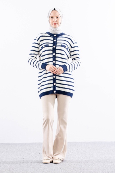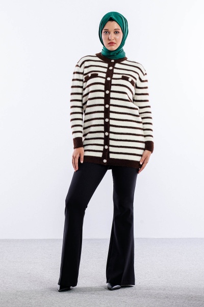 5733 Pelus Hirka Tek Cizgili - Siyah_ekru - 4