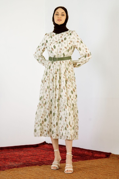 5840 Lale Des. Elbise 38-44 - Pudra - 1