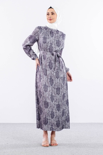 5909 Plise Elbise 1-1-2-2 - Lacivert - 3