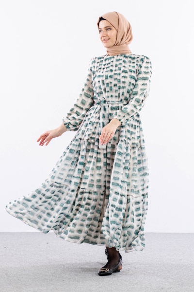 5942 Elbise 1-2-3 Kare Desen - Bordo