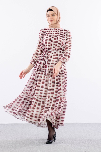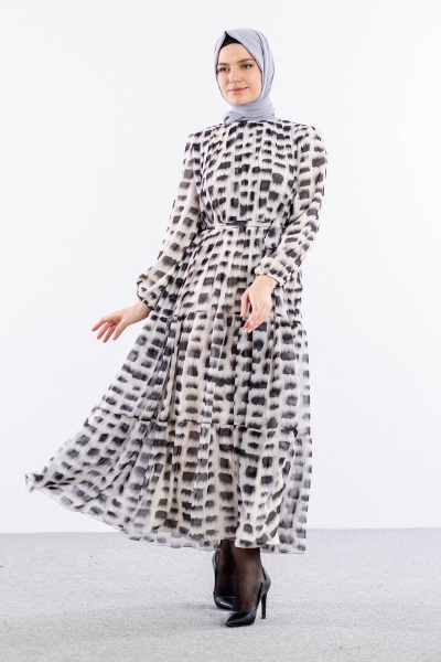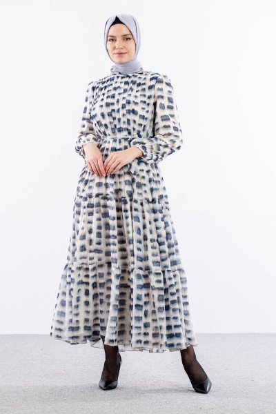 5942 Elbise 1-2-3 Kare Desen - Yesil