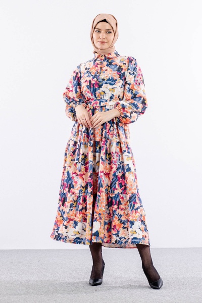 6290 çiçek Des. Elbise 38-44 - Fusya - 4