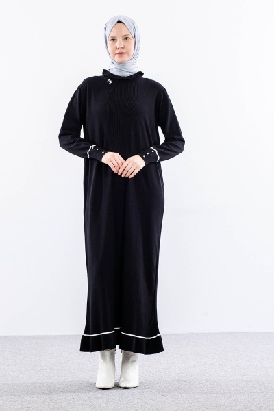 6825 Triko Elbise Tek Tasli - Gri - 1