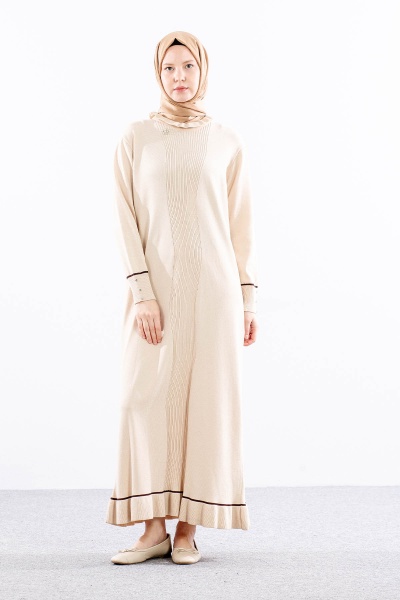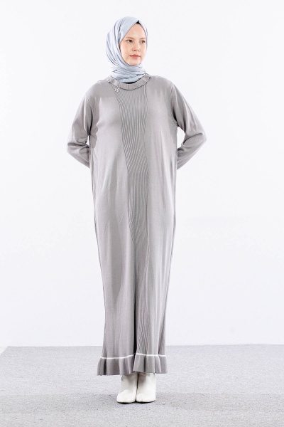 6825 Triko Elbise Tek Tasli - Siyah - 1