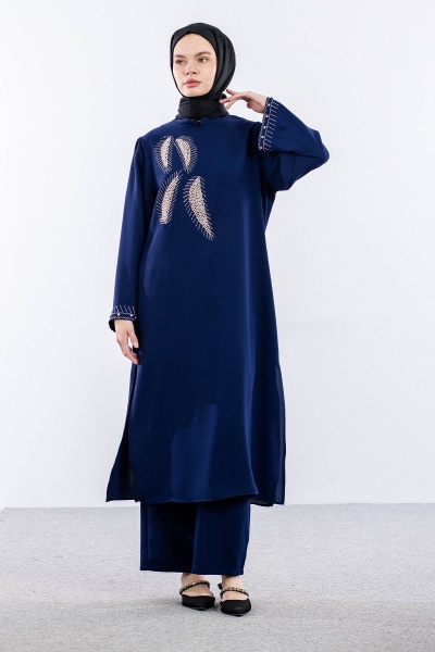 7683 Takim 42-50 Şık Yaprak Tas - Siyah - 3