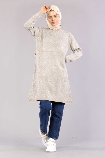 8206 örme Tunik Tek Kare - Gri