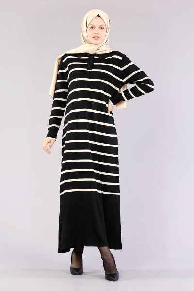 8310 Polo çizgili Elbise Tek - Gri - 1