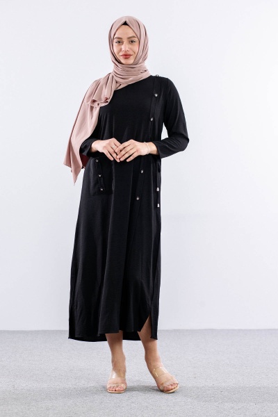8406 Elbise 44-52 Ae Dugme - Lacivert - 4