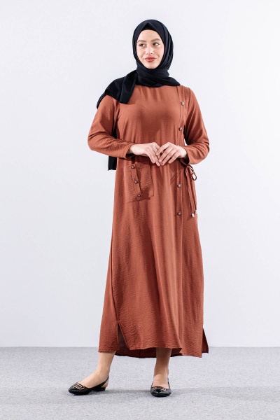 8406 Elbise 44-52 Ae Dugme - Siyah - 5