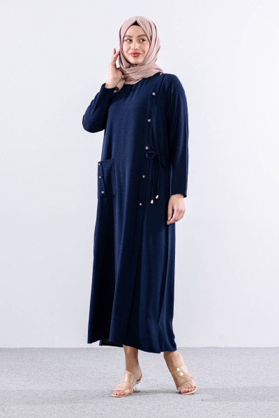 8406 Elbise 44-52 Ae Dugme - Siyah - 1