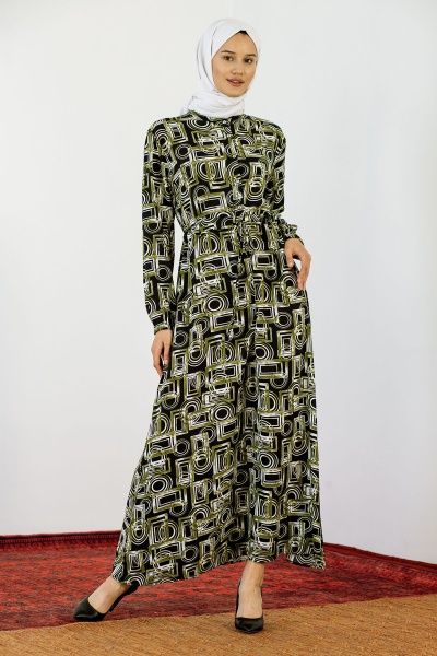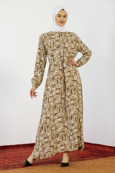 8427 Elbise 44-52 Kare - Kiremit - 1