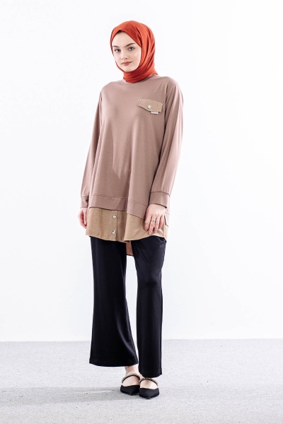 844-58 Tunik 40- Etekucu Kot Garni - Siyah