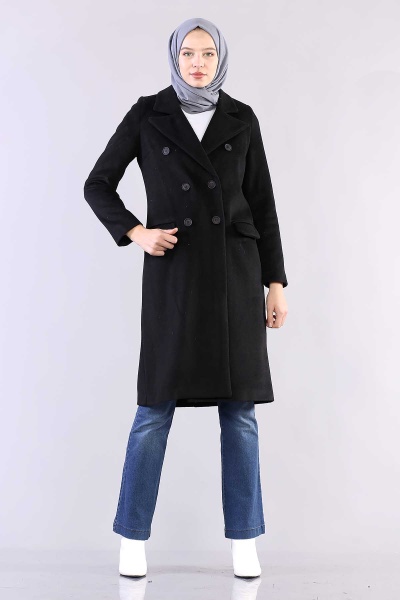 8519 Kaşe Kaban 38-44 - Krem - 1