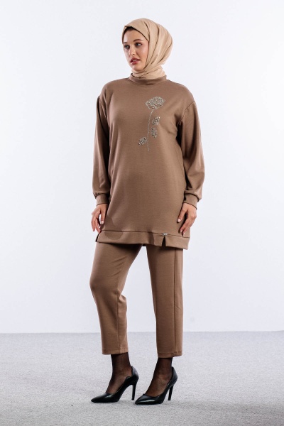 8660 Takim 38-46 Omuzda Gul Desen Tas - Kahve