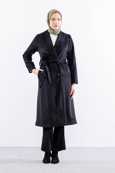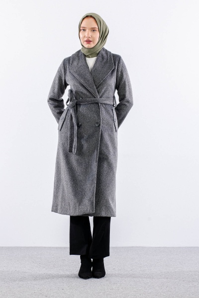 9144 Kaşe Kaban 38-48 - Ekru - 1