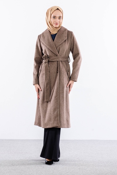 9144 Kaşe Kaban 38-48 - Ekru