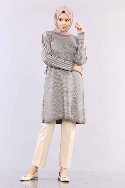 9243 Simli Tunik Tek - Pudra - 3