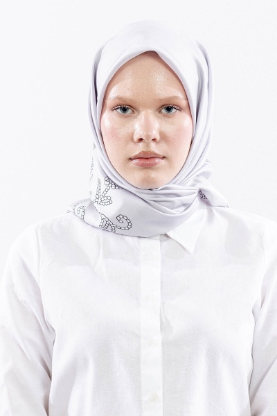 Dg11109 İpek Eşarp 90*90 Tvil Inci - Siyah_bej