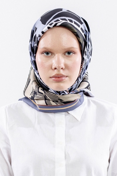 Dg11110 İpek Eşarp 90*90 Tvil - Mavi - - 1