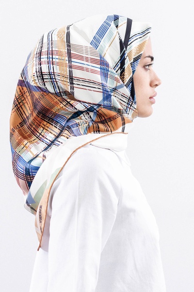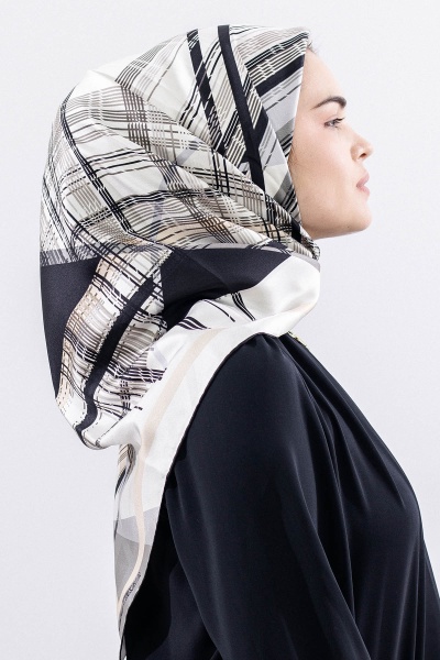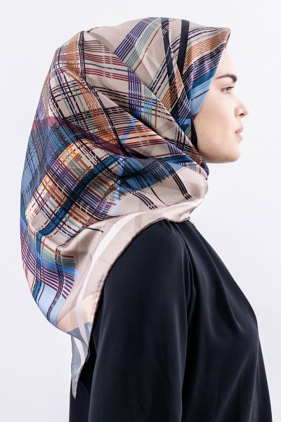Dg11114 İpek Eşarp Tvil 90*90 Cızgı - Pudra