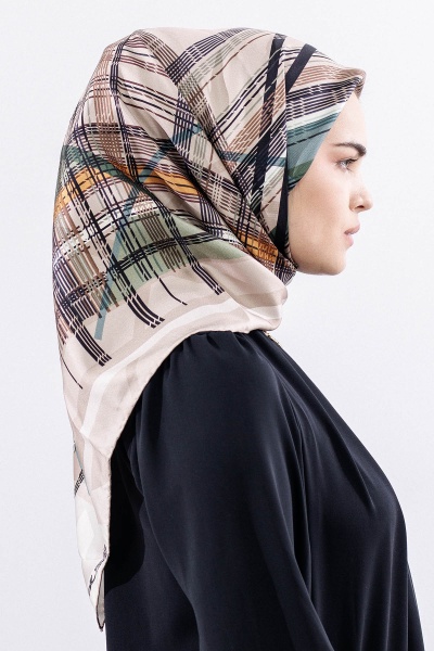 Dg11114 İpek Eşarp Tvil 90*90 Cızgı - Pudra - 1