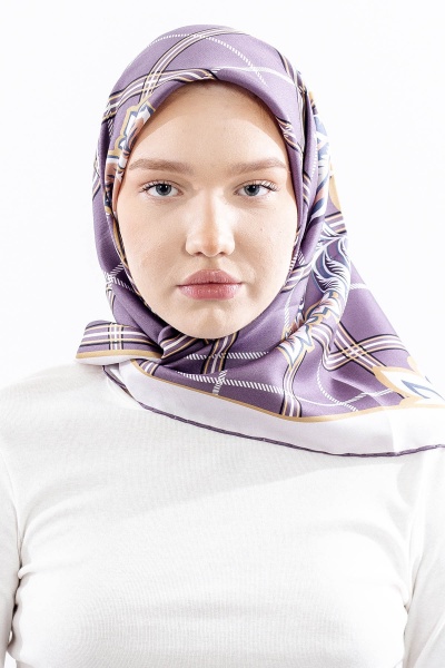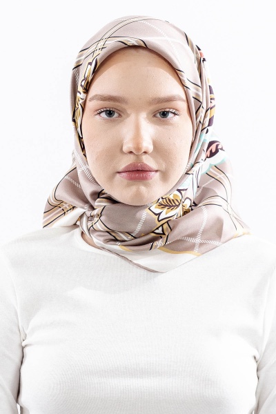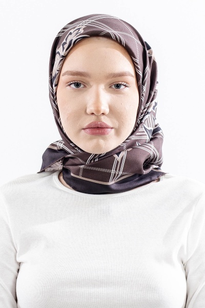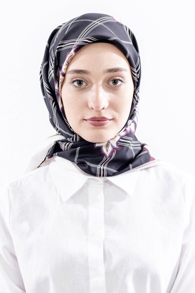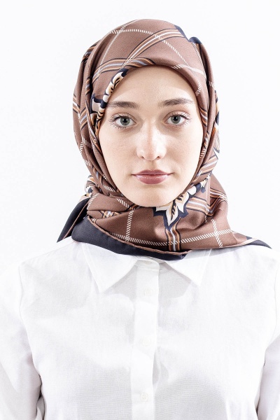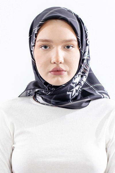 Dg14815 İpek Eşarp Kare Yaprak Tvil Kumas - Lacivert_tas - 1