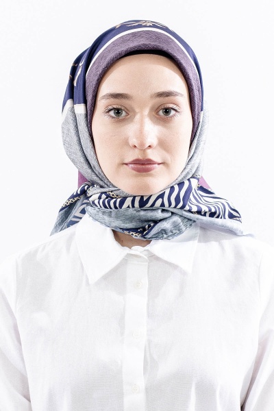 Dg14824 Eşarp Polyester Kumas Zincir Desen - Kahve - 1