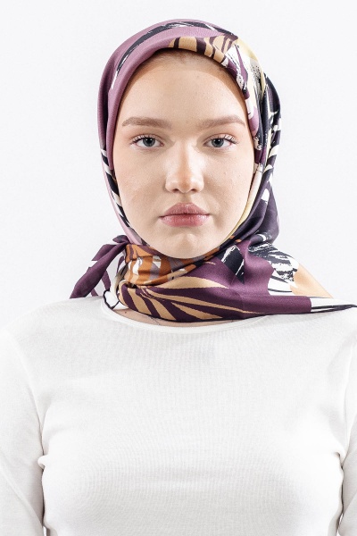 Dg14825 İpek Eşarp Palmiye Desen Tvil Kumas - Pudra - 1