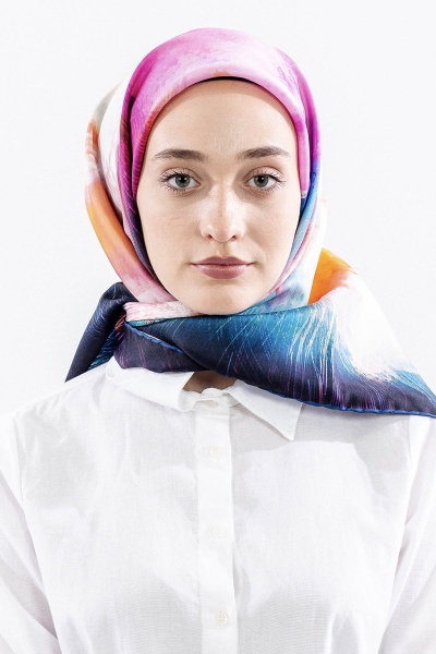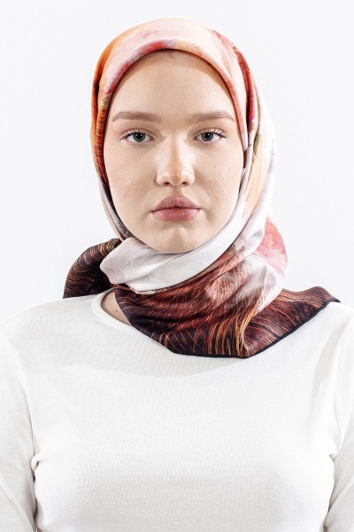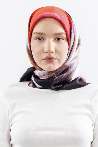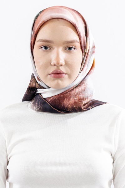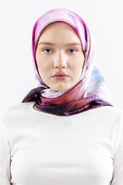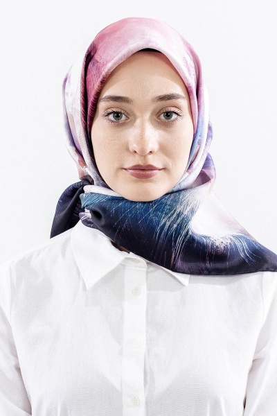 Dg14826 İpek Eşarp Flu Gul Tvil Kumas - Gri