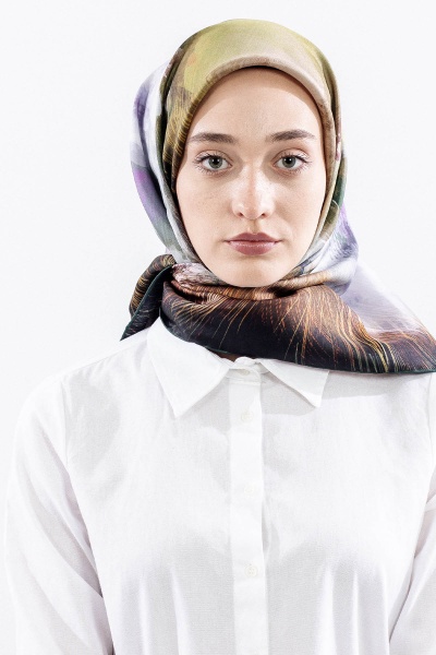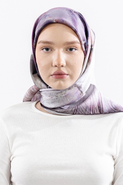 Dg14826 İpek Eşarp Flu Gul Tvil Kumas - Gri - 1