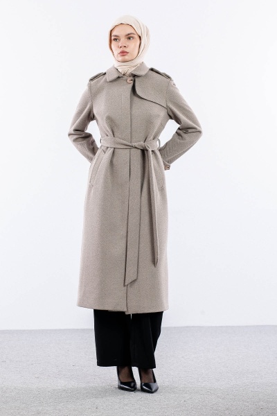 F-1586 Kaşe Kaban 38-48 Baliksirti Fermuarli - K_gri
