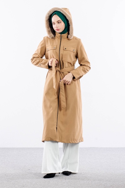 F1580 Parka 38-48 Kurklu Kapson - Kahve - 3