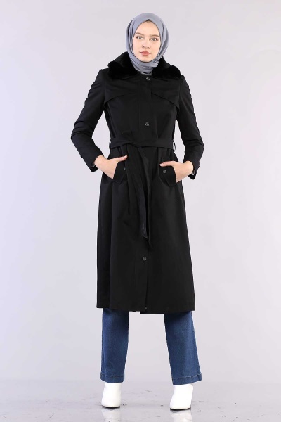 T1121 Kürklü Trençkot 38-46 - Haki - 3