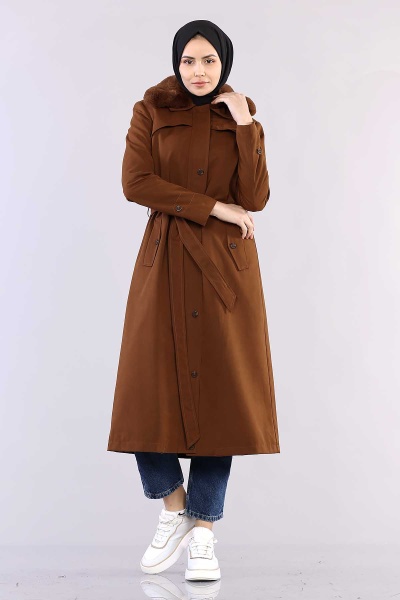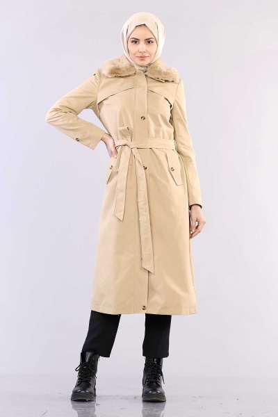 T1121 Kürklü Trençkot 38-46 - Haki - 1